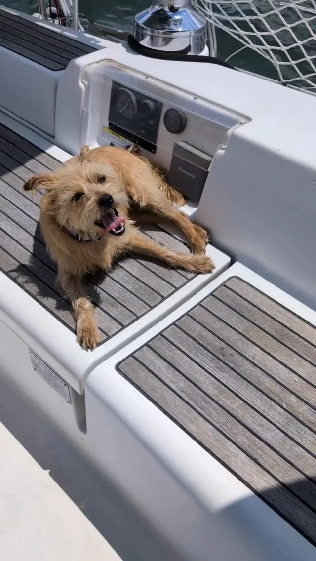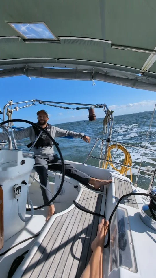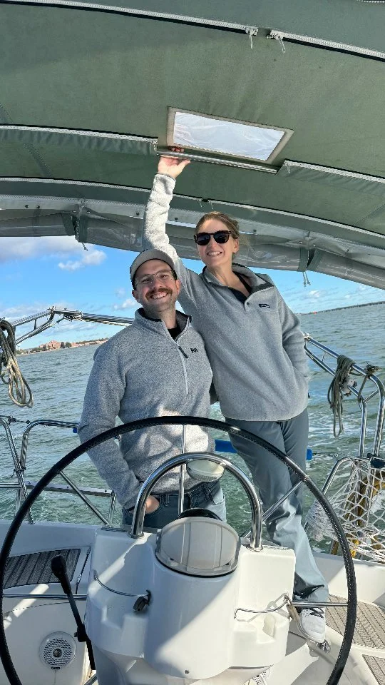 We’re Tom and Abby, co-captains on our Beneteau 393 SALTY FOXX!